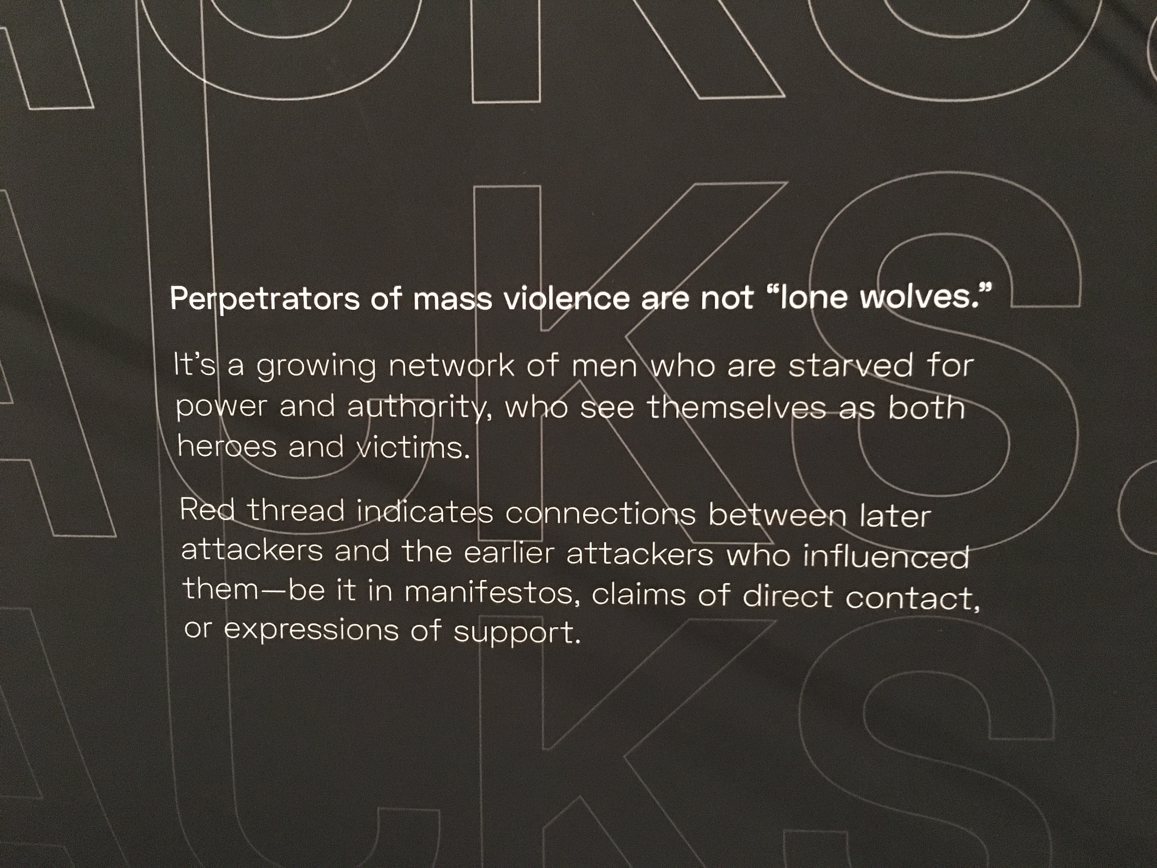 This semester, I explored the space of radicalization, white extremism, and mass violence to pick apart the ecology of hate and how we talk about it. Perpetrators of mass violence are often inspected in isolation, described as “lone wolves,” when in reality they influence one another in a growing, interconnected, wicked problem.